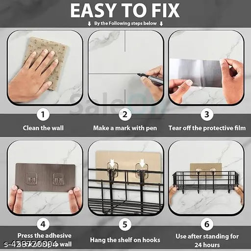(Combo Offer) 2piC Powder Coated Self-Adhesive Shower Bathroom Shelf With Hooks, Hanging Toiletries Holder Makeup Storage Rack For Bathroom , Kitchen Spice Rack Shelf