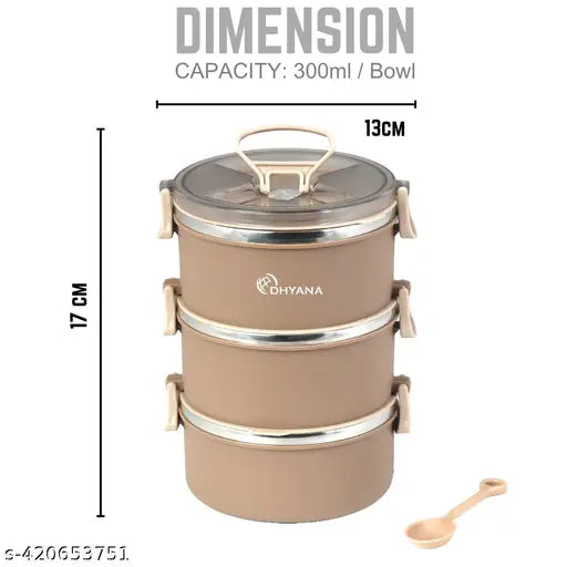 Buy1 Get1 Free Lunch Box Offer For School / Office, 3 Compartment with Airtight Lid Tiffin with Handle & Push Lock, Microwave Safe Food Grade Stainless Steel & Plastic Material (Pack of 2) (Color: New Brown + New Cream)